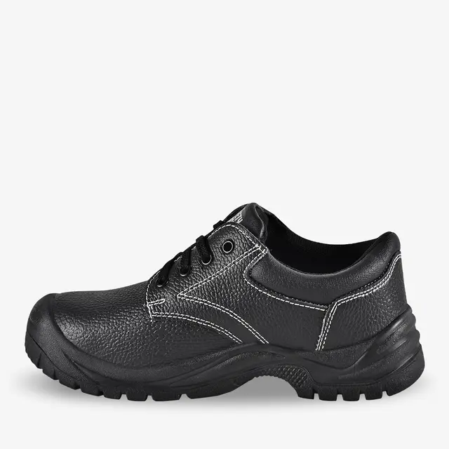 | Design | Low-cut leather safety shoe designed for daily protection in dry environments. Features a steel toecap and puncture-resistant steel midsole for enhanced safety. |